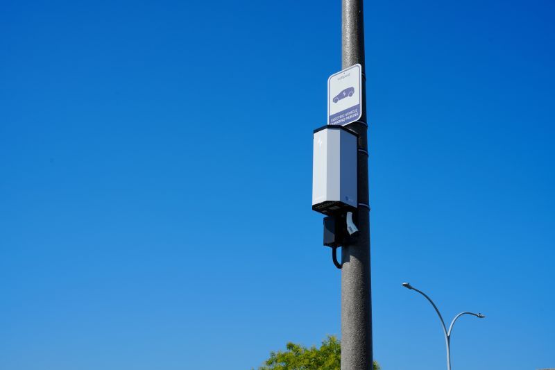 Various types of lampposts and poles, including wooden and metal ones, can be retrofitted with the Voltpost Air.